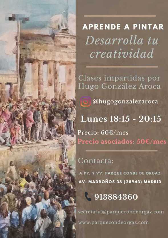 ¡Otra novedad para la temporada 22. Os proponemos los lunes por la tarde clases de pintura de la mano de un artista de primera, Hugo González Aroca. Os esperamos en los locales de la asociación con vuestros pinceles.